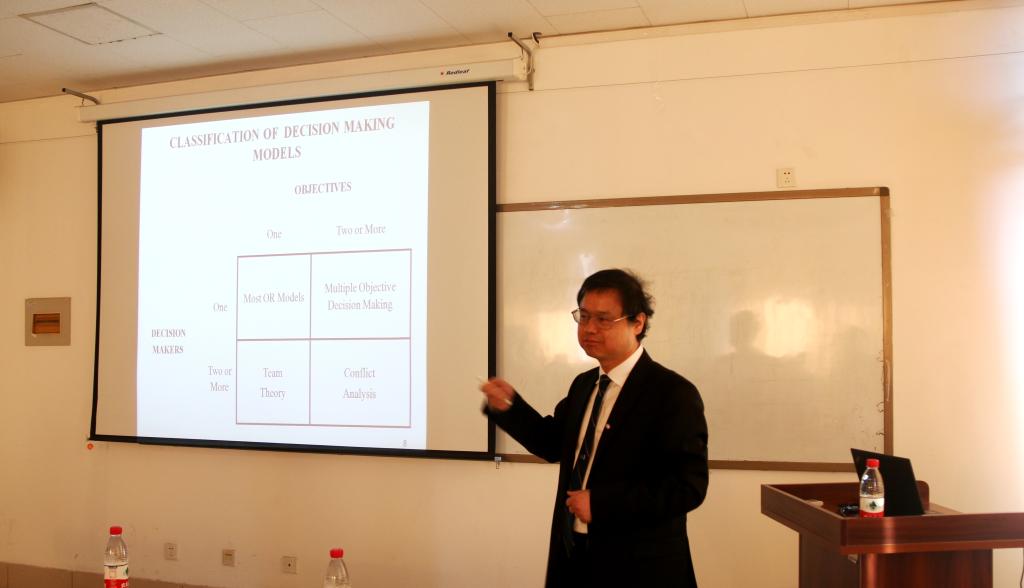 5月4日,加拿大瑞尔森大学(Ryerson University)机械和工业工程系方黎平教授应邀来到suncitygroup太阳新城,为管科师生做了题为“Advances in the Graph Model for Conflict Resolution”的学术报告,副校长张新会见了方黎平院士,对方院士的到访表示欢迎,并希望方院士推动院际间的学术交流与师生互访。校人才办主任王丽娟、管科学院院长刘培德以及部分教师、研究生参加了此次活动,副院长刘位龙主持学术报告。