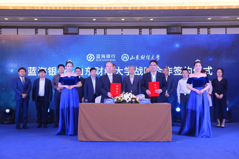 4月20日,学校与蓝海银行协同发展签约仪式在香格里拉大酒店举行,我院作为学校合作对接方参与签约活动。蓝海银行董事长陈彦、行长王有强、监事长宋修广及相关部门负责人,副校长张新及学校合作发展处处长刘奇耀,学院院长刘培德、党委书记李军、副书记徐世星,和山东金融发展研究院院长助理李成友出席了签约仪式和相关活动。