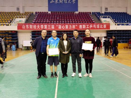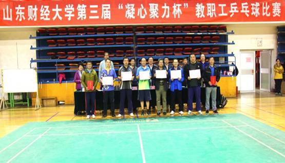 11月3—4日,由校工会主办、体育学院承办、教职工乒乓球协会协办的第三届 “凝心聚力杯”教职工乒乓球比赛在舜耕校区体育馆圆满落下帷幕。校党委副书记车滨,副校长綦好东,纪委书记姜波到场观看比赛并出席闭幕式。